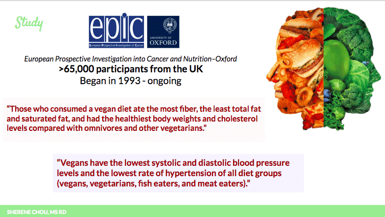 Another well-known study is the EPIC study, or the European Prospective Investigation into Cancer and Nutrition at the University of Oxford. About 65,000 participants from the UK were enrolled in the study in 1993 and it continues on even today.
